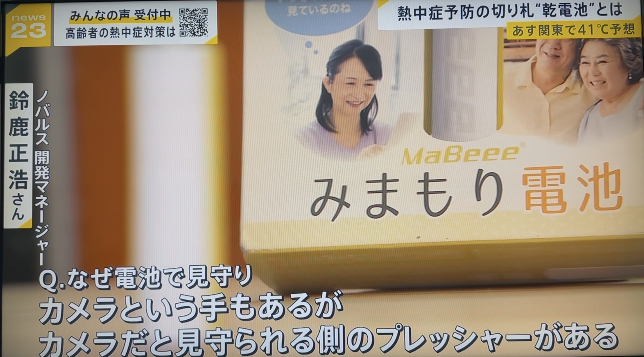 TBS系列「ニュース23」で、当社みまもり電池が放映されました